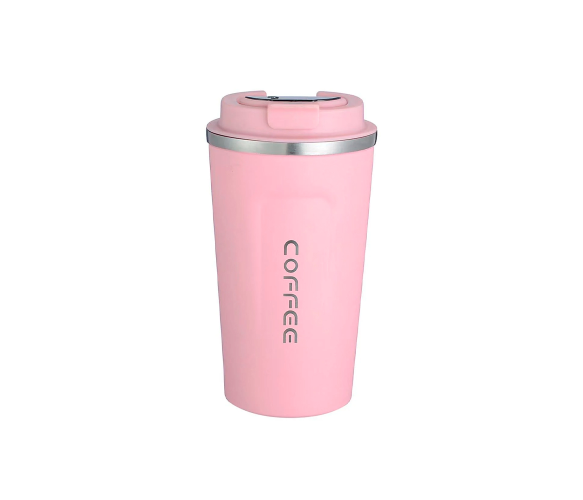 Термокухоль для кави, Merlion з нержавіючої сталі, об'єм 500 мл., рожевий, з відкидною кришкою
