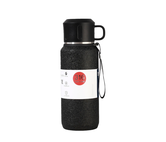 Термос Merlion з нержавіючої сталі, з чашкою та ручкою для перенесення, об'єм 1500 мл., чорний