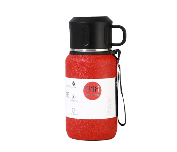 Термос Merlion з нержавіючої сталі, з чашкою та ручкою для перенесення, об'єм 800 мл., червоний