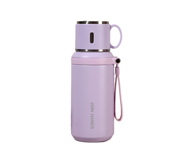 Термос для чаю Merlion з нержавіючої сталі, з чашкою та ручкою для перенесення, об'єм 600 мл., фіолетовий