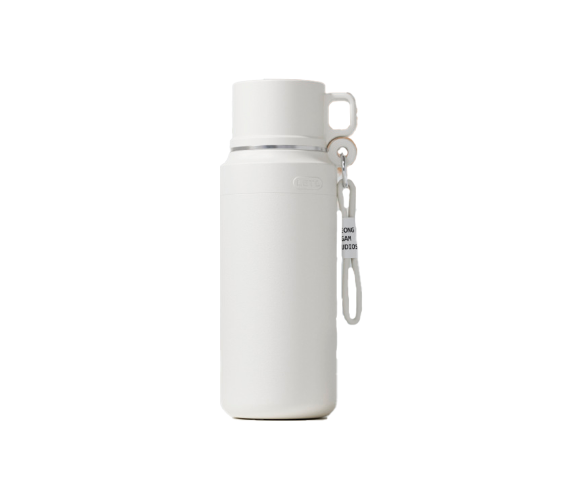 Термос для чаю Merlion з нержавіючої сталі, з ситечком, чашкою та ручкою для перенесення, об'єм 1000 мл., білий