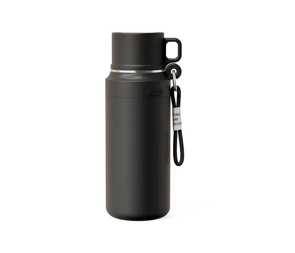 Термос для чаю Merlion з нержавіючої сталі, з ситечком, чашкою та ручкою для перенесення, об'єм 1000 мл., чорний