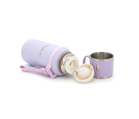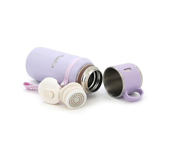 Термос для чаю Merlion з нержавіючої сталі, з ситечком, чашкою та ручкою для перенесення, об'єм 600 мл., фіолетовий