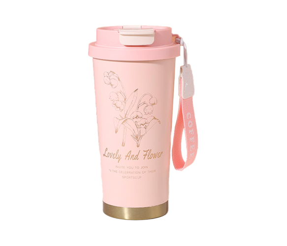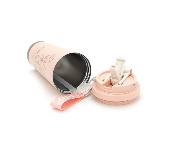Термокухоль пластиковий Merlion Coffee, з трубочкою, об'єм 500мл., колба з нержавіючої сталі, рожева