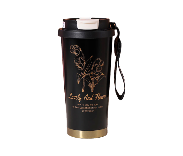 Термокухоль пластиковий Merlion Coffee, з трубочкою, об'єм 500мл., колба з нержавіючої сталі, чорний