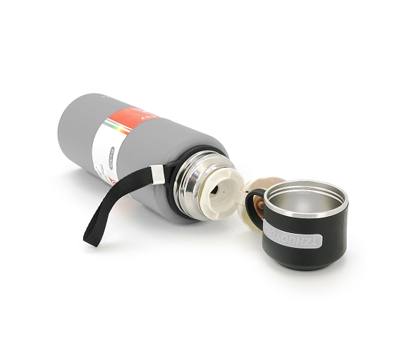 Термос Merlion з нержавіючої сталі, з чашкою в чохлі та ручкою для перенесення, об'єм 800 мл., сірий