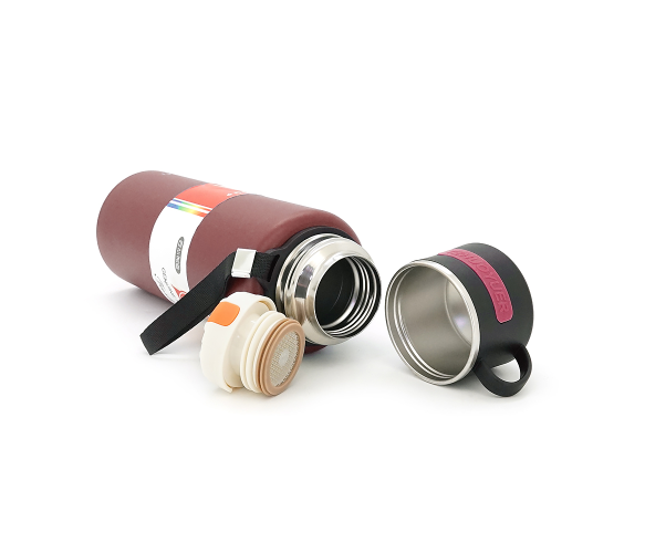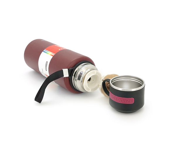 Термос Merlion з нержавіючої сталі, з чашкою в чохлі та ручкою для перенесення, об'єм 1200 мл., бардовий