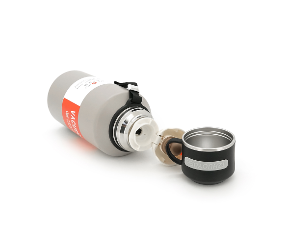Термос Merlion з нержавіючої сталі, з чашкою в чохлі та ручкою для перенесення, об'єм 1500 мл., сірий