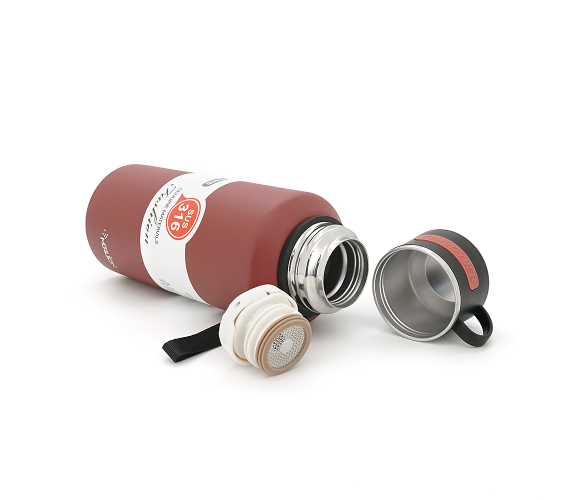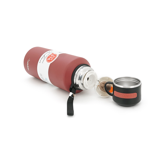 Термос Merlion з нержавіючої сталі, з чашкою в чохлі та ручкою для перенесення, об'єм 1500 мл., бардовий