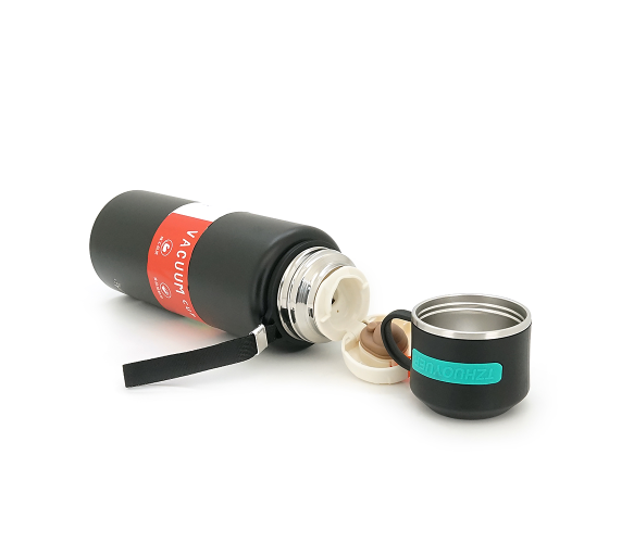Термос Merlion з нержавіючої сталі, з чашкою в чохлі та ручкою для перенесення, об'єм 1500 мл., чорний