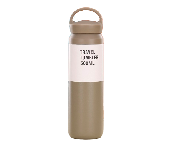 Спортивна термопляшка Merlion, об'єм 500 мл., подвійна кришка з ручкою, колба з нержавіючої сталі, сіра