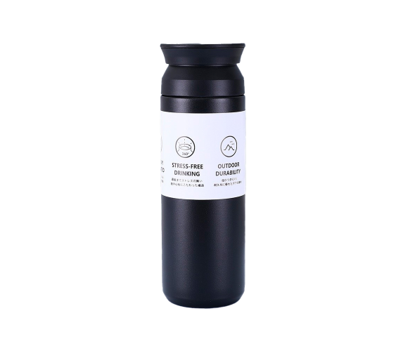 Спортивна термопляшка Merlion, об'єм 350 мл., подвійна кришка, колба з нержавіючої сталі, чорна