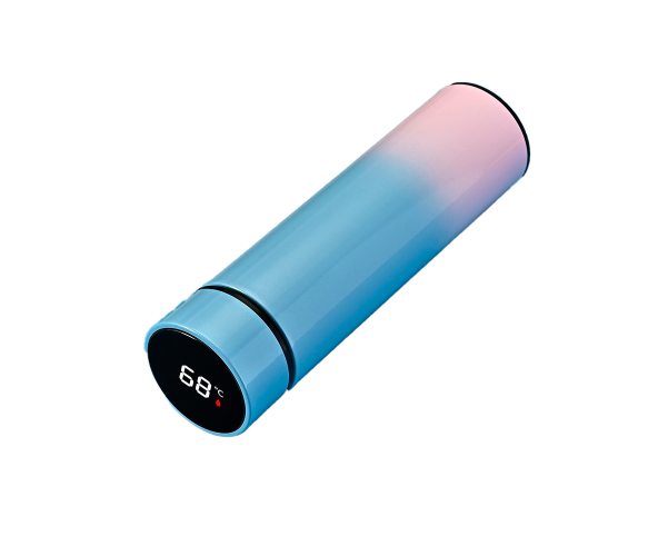 Термос для чаю Merlion SUS-304E-W із нержавіючої сталі, цифровий термометр, 230*65мм, об'єм 500 мл., 400гр. синьорозовий