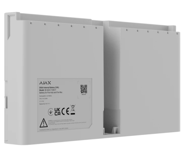 • Опис: EN54 Internal Battery (24h) – це літій-іонна батарея ємністю 5 А·год, призначена для забезпечення автономної роботи EN54 Fire Hub Jeweller або EN54 Fire ReX Jeweller до 24 годин. Відповідає стандартам EN 54 та сумісна з пожежними системами Ajax.