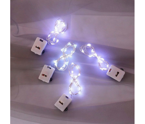 Гірлянда 20LED, 1 режим, 3 метри, прозора ізоляція, живлення від 3*АА, White