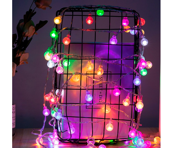 Гірлянда Кулька різнокольорова, 40шт, 6 метрів, прозора ізоляція, живлення USB