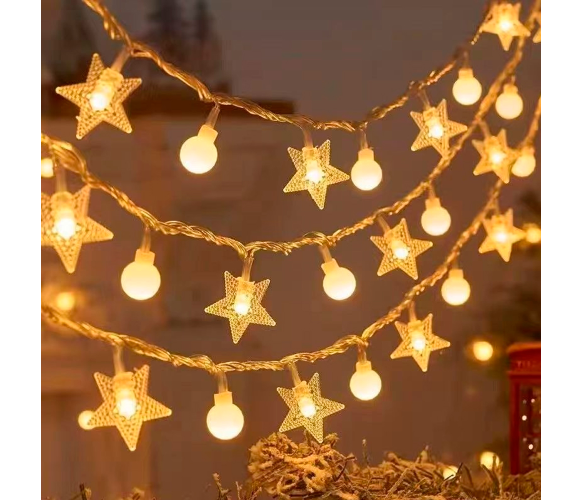 Гірлянда Зірки + Кулі White, 80шт, 10 метрів, прозора ізоляція, живлення 220V