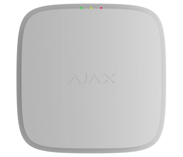 EN54 FireProtect (Smoke/Sounder) Jeweller – це бездротовий адресний пожежний сповіщувач сертифікований за стандартом EN 54, призначений для виявлення диму в приміщеннях. Забезпечує цілодобовий захист, працюючи 24/7, незалежно від режиму охоронної системи Ajax. Інтегрується в систему Ajax і забезпечує надійний зв'язок із ППКП через захищений радіопротокол Jeweller на відстані до 1700 метрів за відсутності перешкод. Двоспектральний оптичний сенсор із синім та інфрачервоним світлодіодами точно визначає задимлення, аналізуючи розмір частинок у камері. Алгоритм HazeFlow 2 мінімізує хибні тривоги. Камера стійка до пилу, бруду та комах, що знижує необхідність частого обслуговування. Пристрій оснащений вбудованим звуковим оповіщувачем, що активується під час пожежної тривози, і передає події (пожежна тривога, несправність сенсора або оповіщувача, запилення камери, низький заряд батареї, спрацювання тампера) через Ajax PRO Desktop або ПЦС (SurGard, SIA, ADEM). Адреса пристрою дозволяє точно виз