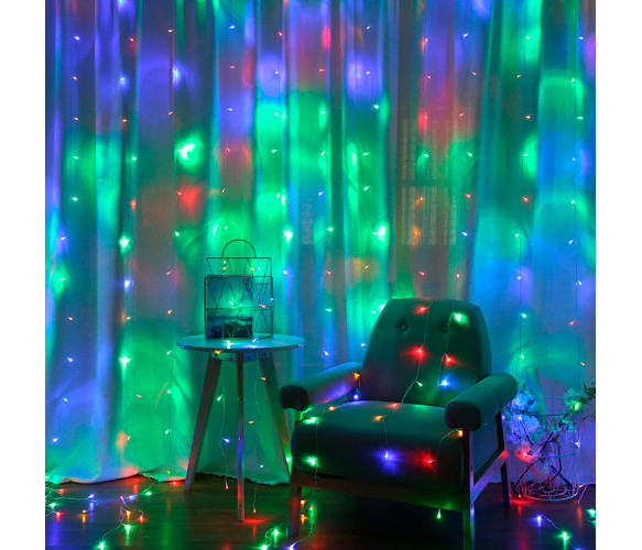 Гірлянда 120LED Водоспад (Red/Green/Blue/Yellow), 8 режимів, 3*1 метр, прозора ізоляція, живлення 220V