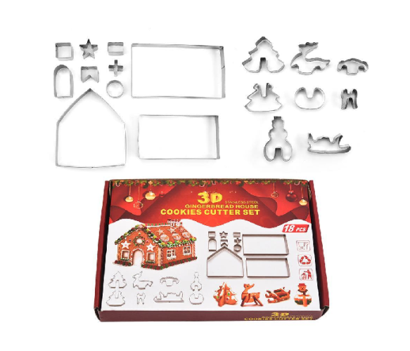Форми для печива YR1806-29 з нержавіючої сталі (різдвяний будиночок) 18 предметів/фігурок, Box