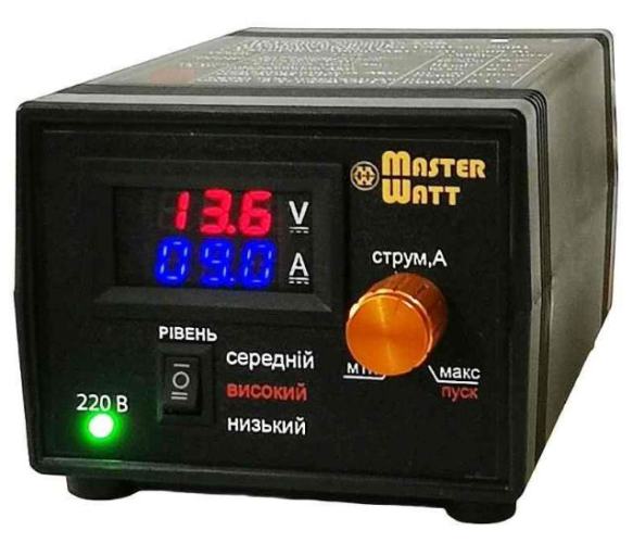 Використовується для заряду та зберігання всіх видів АКБ (в т.ч. AGM та гелевих), а також при роботі зарядного пристрою в режимі блоку живлення 12В.