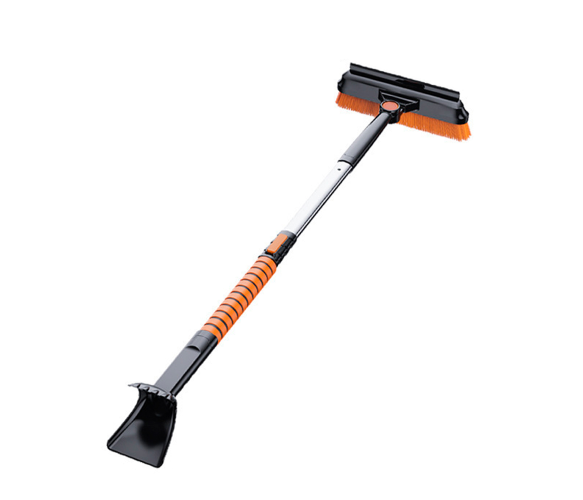 Щітка-скребок автомобільна телескопічна 2в1, загальна довжина 80-100см, щітка 25см, скребок 9см, чорна з помаранчевим