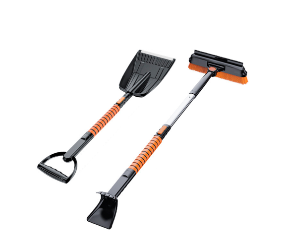 Щітка-скребок телескопічна автомобільна 3в1, загальна довжина 80-100см, щітка 25см, скребок 9см, лопатка 21см, чорна з оранжевим