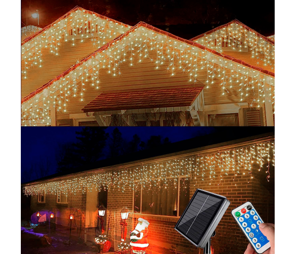 Гірлянда 180LED (Бахрома) White Hot, 5х0,7м, 8 режимів, вулична із сонячною панеллю та пультом. прозора ізоляція