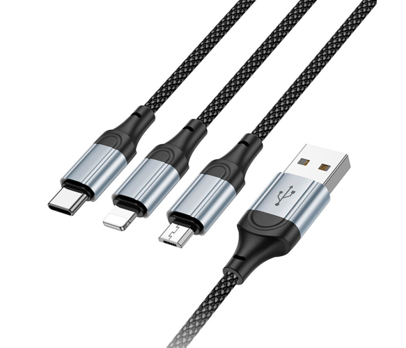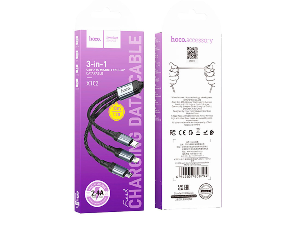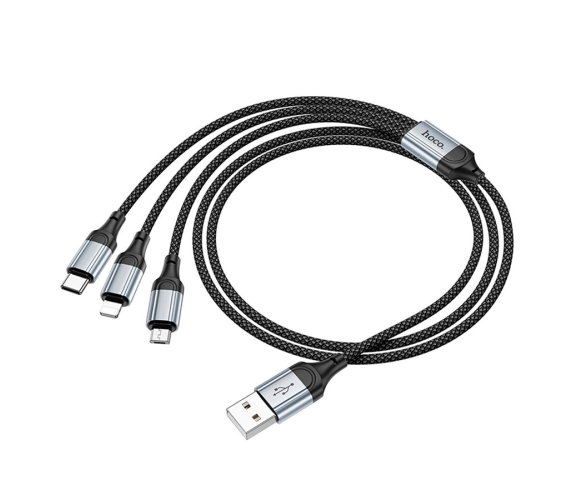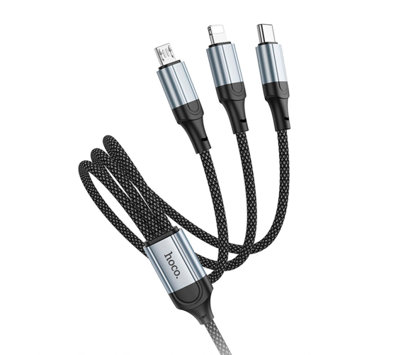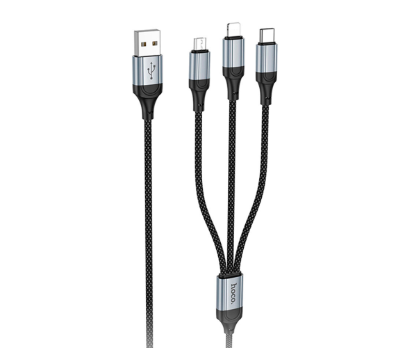 Кабель HOCO X102 USB-1 3 in 1 Micro/Iphone/Type-C, 2A, довжина 1м, Black, Box
