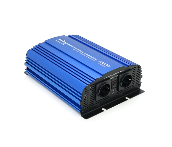 Інвертор напруги Tommatech MS-2000, 12В/220В, 2000Вт з апроксимованою синусоїдою, 2Шуко, USB, 2*клемні дроти, 8 запобіжників, Q1