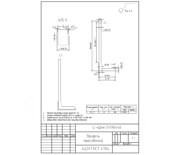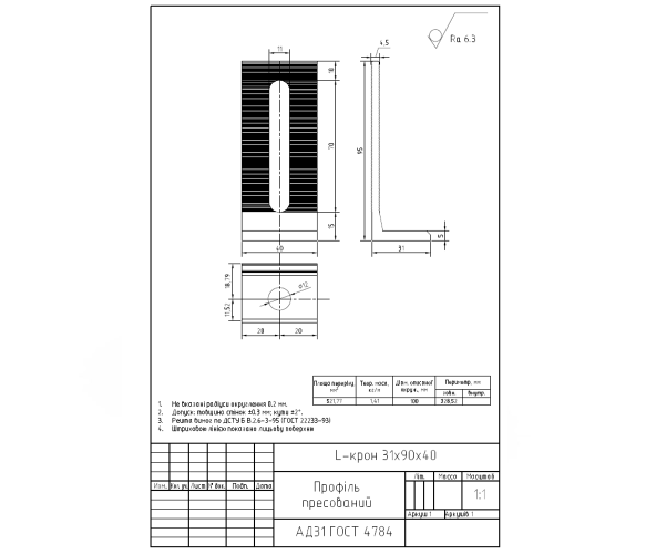 Кронштейн L-подібний алюмінієвий (50*40*100/товщина 5/6.2)