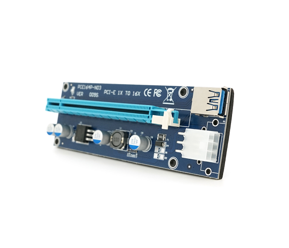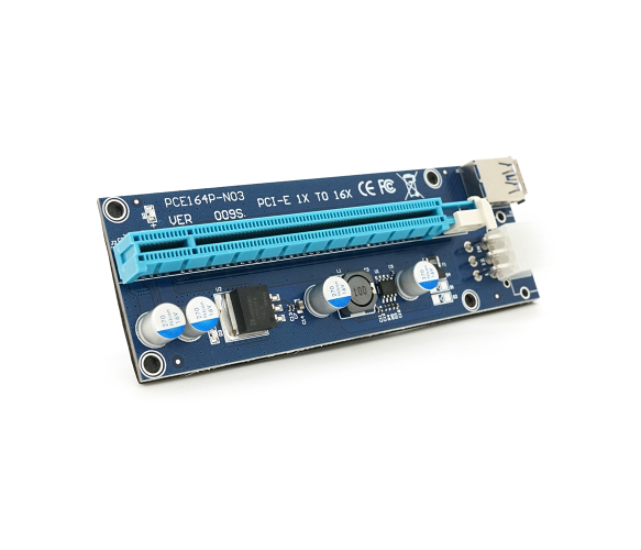 Плата PCE164P-N09 (V009S-Plus) Riser PCI-EX, x1=>x16, USB 3.0, DC12V(PCI-E/6pin), конденсатори 270, VER009S,Пакет