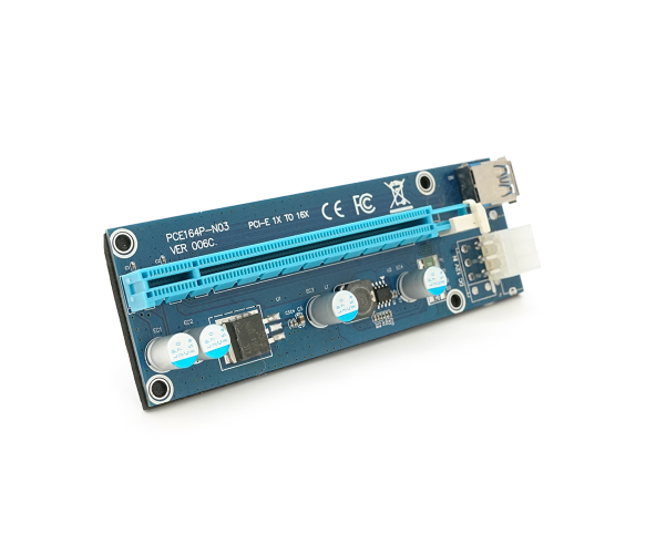 Плата PCE164P-N03 (VER006C) Riser PCI-EX, x1=>x16, USB 3.0, DC12V(PCI-E/6pin), конденсатори 270, VER006C,Пакет
