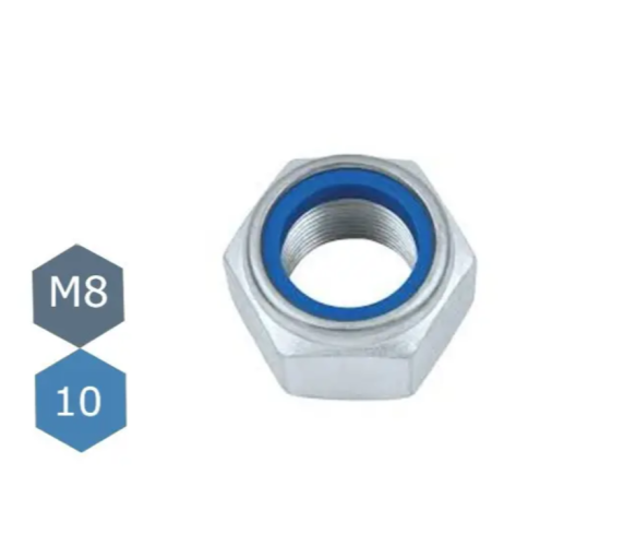 Гайка М8 самоконтряща з нейлоновим кільцем клас міцності 10.0 DIN 985