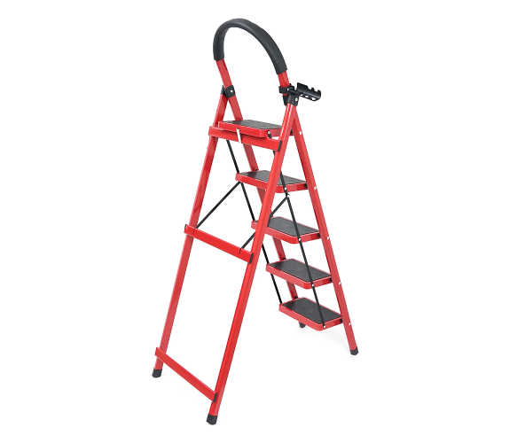 Складні сходи 125см, до 150кг, 5 сходинок з гумовими килимками, металеві, 6.3кг, Box