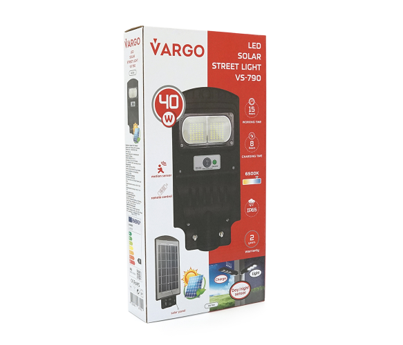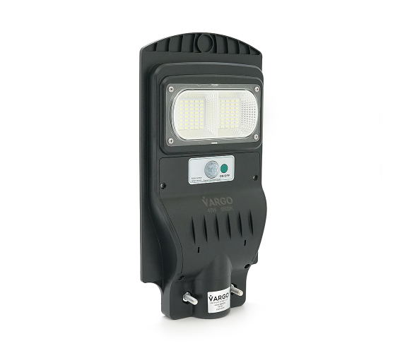 Вуличний ліхтар Vargo з сонячною батареєю на стовп 1VPP, 1 режим, корпус-міцний пластик, 40W, 6500K, 5400Lm, ip66, вбудований акумулятор, Black, Box