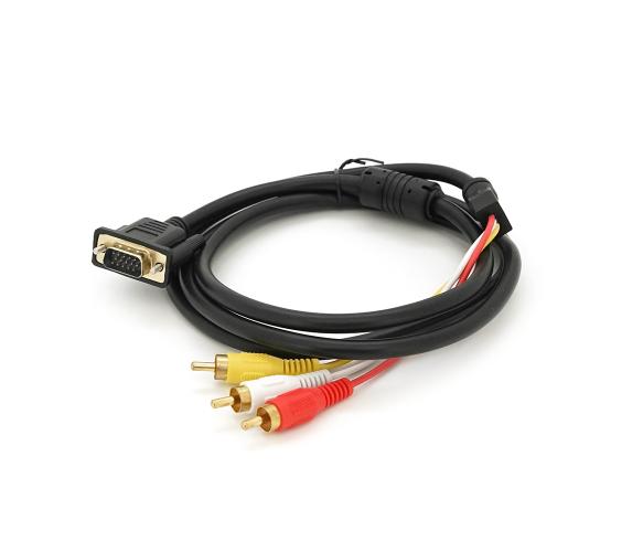 Кабель VGA (тато)-3RCA (тато) 1.5m, Black/Red, без обплетення, ОЕМ
