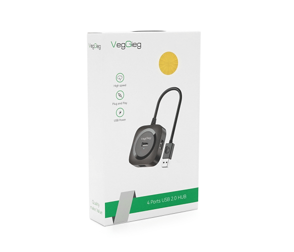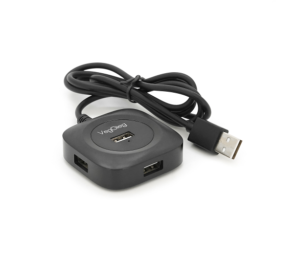Хаб VEGGIEG V-U2406 USB 2.0 4 порта, 480Mbts, живлення від USB, Black, 1,0m, Box
