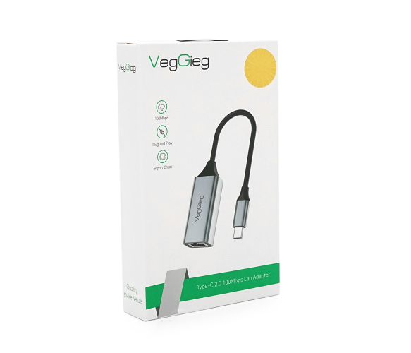 Контролер Type-C to Ethernet VEGGIEG V-K309 - Мережевий адаптер 10/100Mbps з проводом, Aluminum, Blister-Box