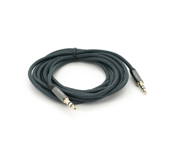Кабель VEGGIEG V-A502 AUX Audio DC3.5 тато-тато 2.0м, GOLD Stereo Jack, обплетення, (круглий) Grey cable, Пакет