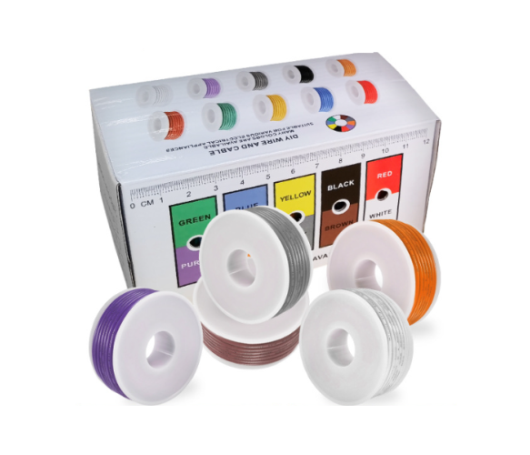 Кабель силіконовий луджений AWG 28 28AWG/0,08квМ/600В, 5*10 метрів, CU, вологостійкий, термостійкий, multikolor, 400*300*300mm, BOX