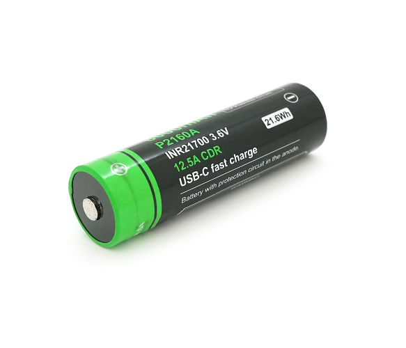 Акумулятор 21700 Li-Ion Vapcell P2160A, 6000mAh, 12.5A, 3.6V (2.5-4.2V), USB type-c, 2 шт. в упаковці, ціна за 1 шт
