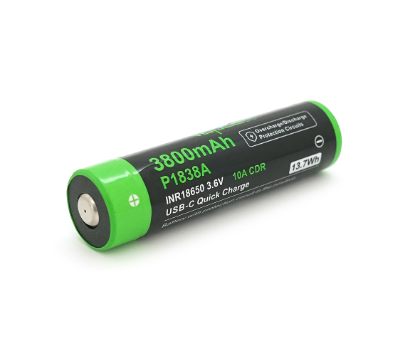 Акумулятор 18650 Li-Ion Vapcell P1838A, 3800mAh, 10A, 3.6V (2.5-4.2V), USB type-c, 2 шт. в упаковці, ціна за 1 шт