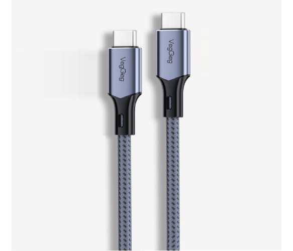 Кабель VEGGIEG V-M002C, Type-C(Male) to Type-C(Male) PD cable, 100 Вт, струм 3 А, 480 Мбіт/с, Gray, довжина 1,2 м, Box