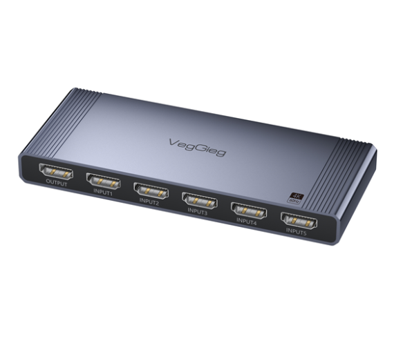 Комутатор VEGGIEG V-HD11 HDMI 1*5, HDTV2.0 4K, Grey, Box