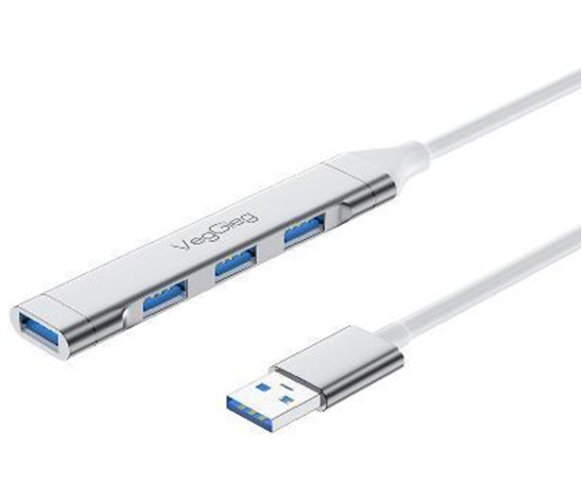Хаб VEGGIEG V-K301 USB 3.0 на USB 3.0/4 порти, 480Mbts, живлення від USB, 0.15m, Silver, Box