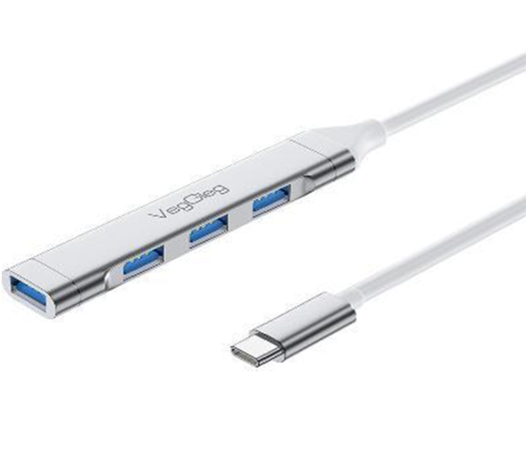Хаб VEGGIEG V-K301 Type-C на USB 3.0/4 порту, 480Mbts, живлення від USB, 0.15m, Silver, Box