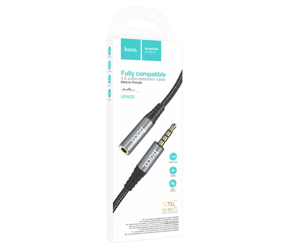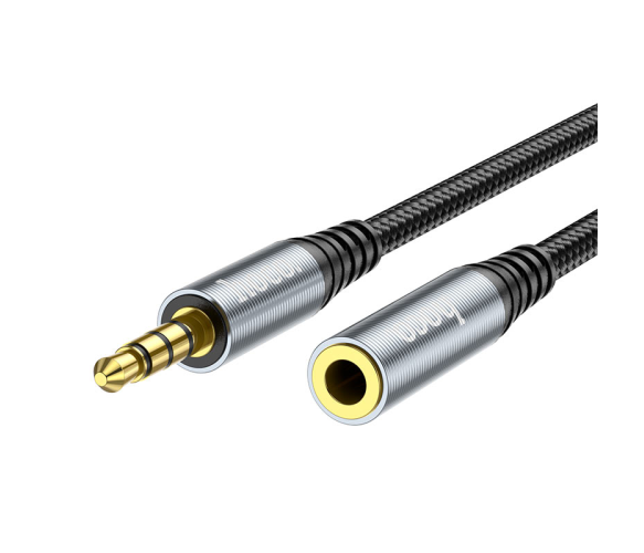 Подовжувач HOCO UPA20 DC3.5 тато-мама 1.0м, GOLD Stereo Jack, (круглий) Black cable, Box