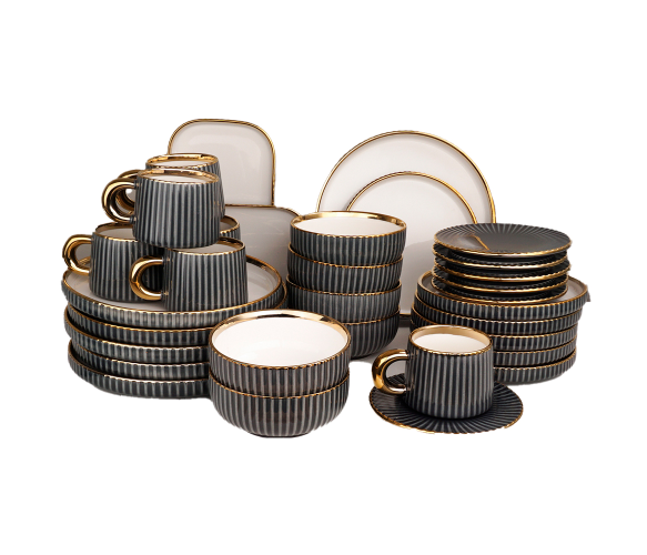 Чайный сервиз на 6 персон, прямоуголный разнос х 2шт., чашка с блюдцем х 6шт., пиала х 6 шт., десертная тарелка х 6 шт.