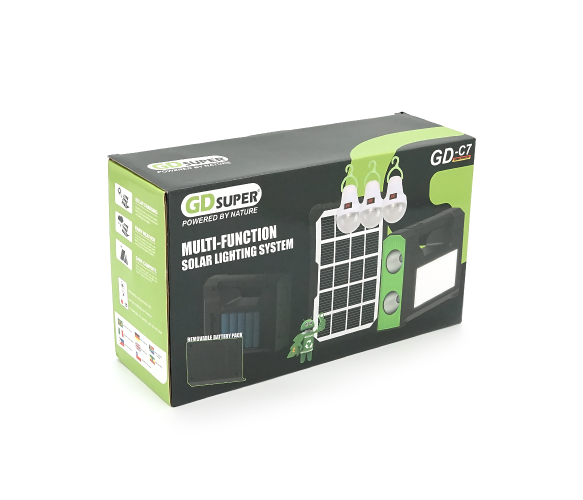 Переносний ліхтар GD-C7+ Solar, 1+1 режим, вбудований акум, 3 лампочки 3W, USB вихід, Black, Box